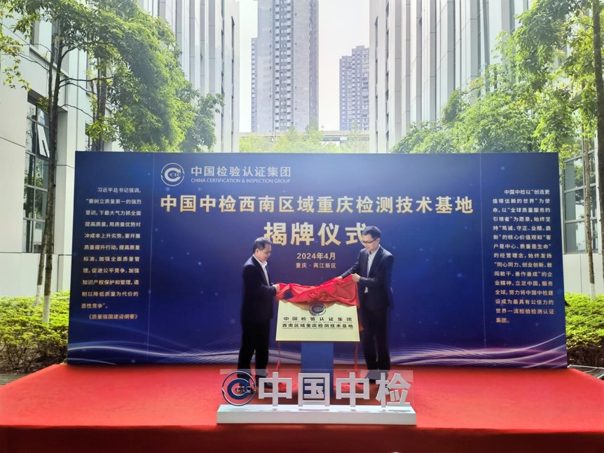 2024年4月24日,中國中檢西南區(qū)域重慶檢測技術(shù)基地在兩江新區(qū)南山工業(yè)園區(qū)正式揭牌,標志著兩江新區(qū)與中國中檢西南區(qū)域的合作迎來了新的“里程碑”,將為中國西部檢驗檢測發(fā)展注入新動力。