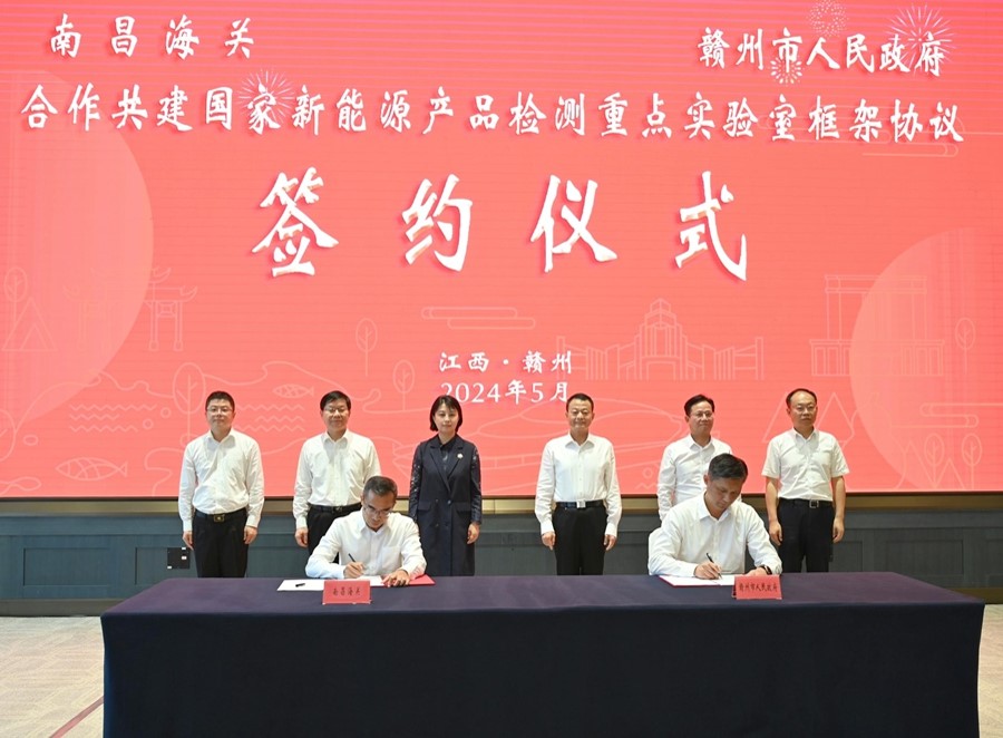 2024年5月10日,南昌海關(guān)與贛州市政府簽署合作共建國家新能源產(chǎn)品檢測重點實驗室框架協(xié)議。