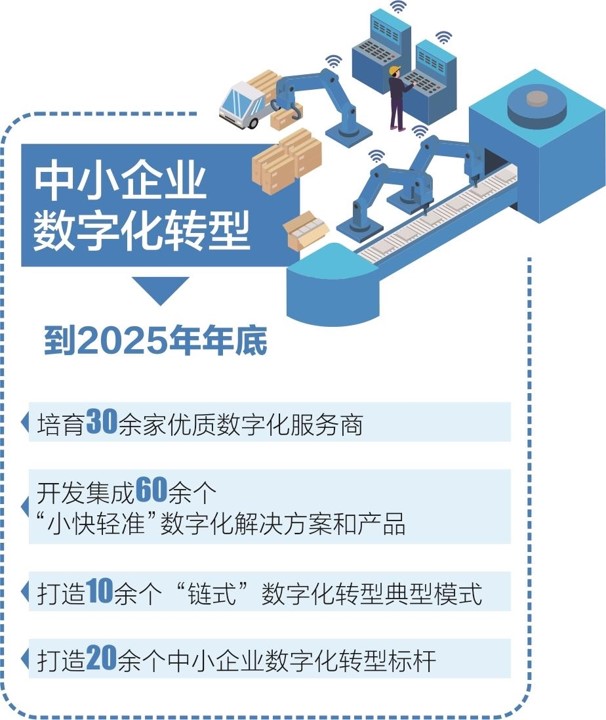 到2025年底,培育30余家優(yōu)質(zhì)數(shù)字化服務(wù)商,開發(fā)集成60余個“小快輕準(zhǔn)”數(shù)字化解決方案和產(chǎn)品,打造10余個“鏈?zhǔn)健睌?shù)字化轉(zhuǎn)型典型模式,打造20余個中小企業(yè)數(shù)字化轉(zhuǎn)型標(biāo)桿,奮力打造全國中小企業(yè)數(shù)字化轉(zhuǎn)型樣板城市。