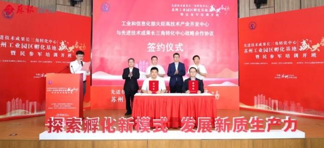 工業(yè)和信息化部火炬高技術(shù)產(chǎn)業(yè)開發(fā)中心黨委書記、主任呂先志在致辭時表示,希望能以本次簽約合作為契機,充分發(fā)揮雙方的政策優(yōu)勢、資源優(yōu)勢和能力優(yōu)勢,積極探索科技成果轉(zhuǎn)移轉(zhuǎn)化的新模式、新手段,加快科技創(chuàng)新和產(chǎn)業(yè)創(chuàng)新的深度融合,努力把成果轉(zhuǎn)化工作做深做實、做優(yōu)做強,進一步提高國防工業(yè)領(lǐng)域科技成果轉(zhuǎn)化、孵化和產(chǎn)業(yè)化能力,為推動長三角區(qū)域經(jīng)濟高質(zhì)量發(fā)展貢獻更大力量。