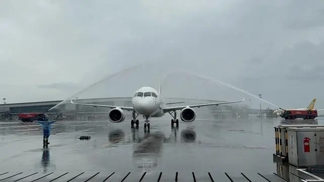 國產(chǎn)大飛機C919于6月14日開啟第四條商業(yè)定期航線的運營。上午9時許,機號為B-919A的東航全球首架C919客機執(zhí)行MU5309航班,搭載162名旅客,從上海虹橋機場飛往廣州白云機場,航班于11時許抵達(dá),并受到民航最高禮儀“過水門”的迎接。