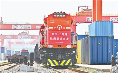 2024年6月14日,首趟鄭州至日照港鐵海聯(lián)運(yùn)班列從國鐵集團(tuán)鄭州局圃田站啟程,搭載汽車配件、機(jī)械設(shè)備等貨物一路向東,抵達(dá)日照港后轉(zhuǎn)海運(yùn)發(fā)往東南亞地區(qū)。