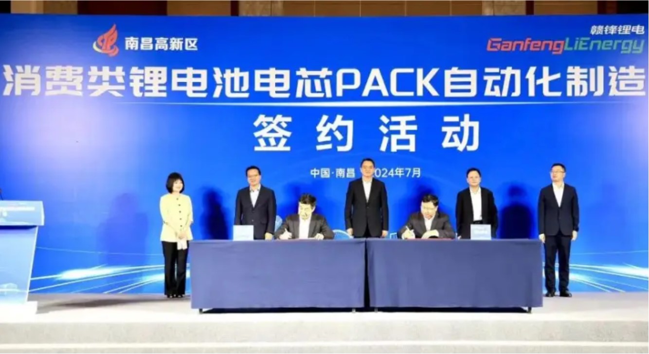 2024年7月2日,江西贛鋒鋰電科技股份有限公司消費類鋰電池電芯PACK自動化制造項目簽約活動舉行。