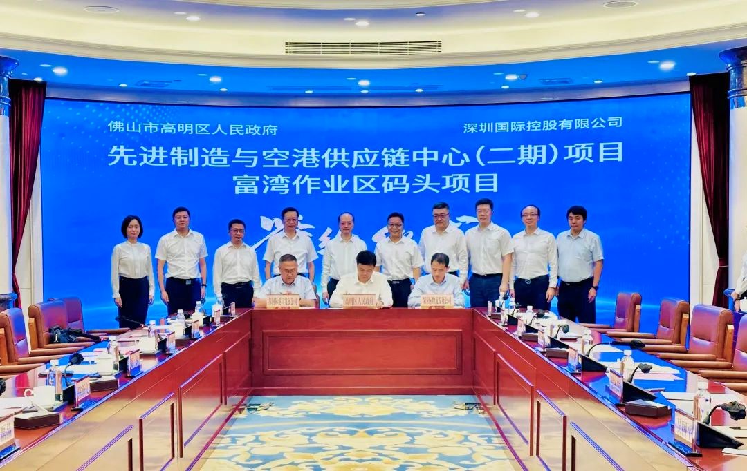 2024年7月4日,佛山市高明區(qū)政府與深圳國際控股有限公司(以下簡稱“深國際”)舉行先進制造與空港供應鏈中心(二期)項目、富灣作業(yè)區(qū)碼頭項目簽約儀式。