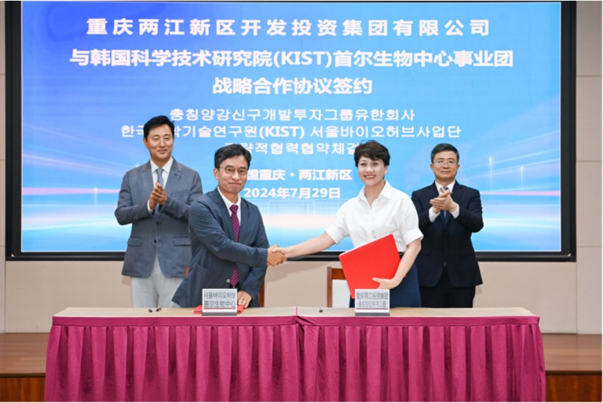2024年7月29日,兩江生命科技城與韓國首爾生物中心簽署戰(zhàn)略合作協(xié)議。