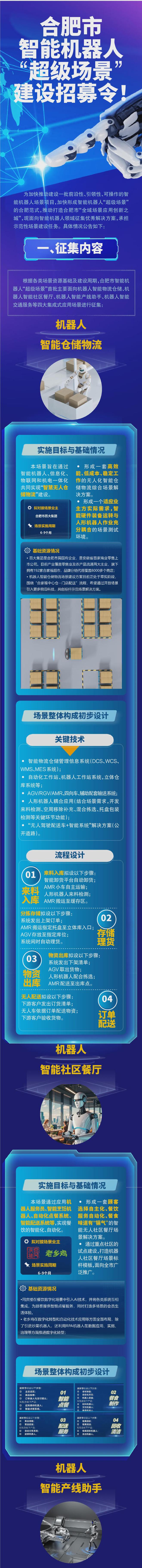 此次面向全國發(fā)布智能機器人“超級場景”建設招募令,主要是征集優(yōu)秀的機器人產(chǎn)品和解決方案在合肥落地應用。為此,合肥開放物流倉儲、社區(qū)餐廳、產(chǎn)線助手、交通服務四大場景需求。此次招募令明確了具體的需求方及應用場景,真正推動產(chǎn)業(yè)合作“事事有回應、件件有著落”。