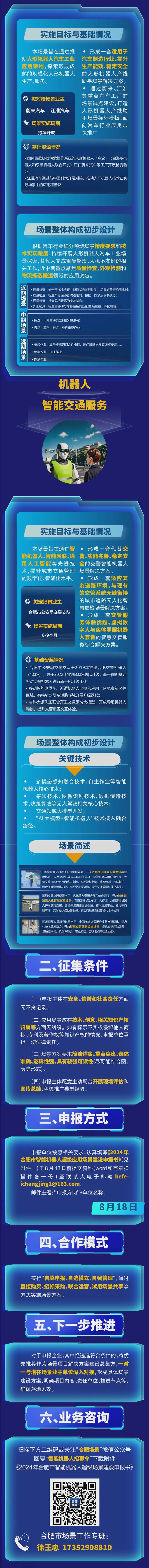 2024年8月7日,從合肥市發(fā)展改革委獲悉,為加快形成智能機器人“超級場景”的合肥范式,合肥面向全國征集智能機器人優(yōu)秀解決方案。
