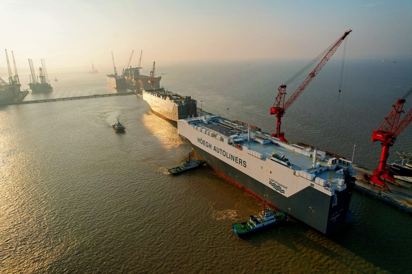 招商局集團旗下招商工業(yè)海門基地建造的第一艘9100車雙燃料汽車滾裝船“禮諾極光”號,在海巡艇的引領(lǐng)和3艘拖輪的護航下,順利駛離船廠碼頭。該船是目前全球最大環(huán)保型汽車滾裝船,也是世界航運業(yè)綠色化、智能化發(fā)展的一個新起點。