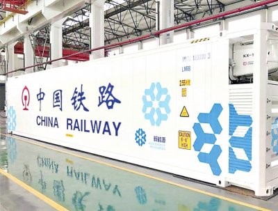 滬蓉鐵路線上,6個(gè)鋰電池新能源冷藏集裝箱每天載著肉制品飛馳。4天的運(yùn)輸過程中,在不需要充電等人工介入的情況下,箱體內(nèi)溫度仍保持在零下20多度。由中車長(zhǎng)江集團(tuán)研制的這種新能源冷藏箱,在滬蓉鐵路試運(yùn)行兩年之后,即將大規(guī)模投用。