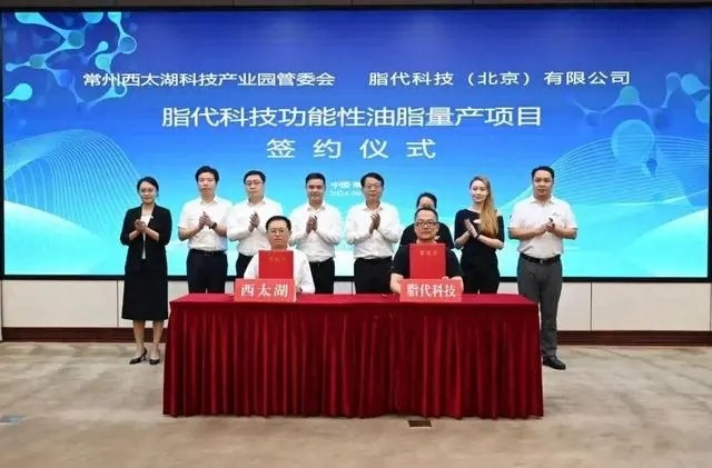 2024年9月26日,脂代科技功能性油脂量產項目簽約落戶常州西太湖科技產業(yè)園。項目一期投資1億元,規(guī)劃年產能1萬噸,主要生產減負甘油二酯油產品。