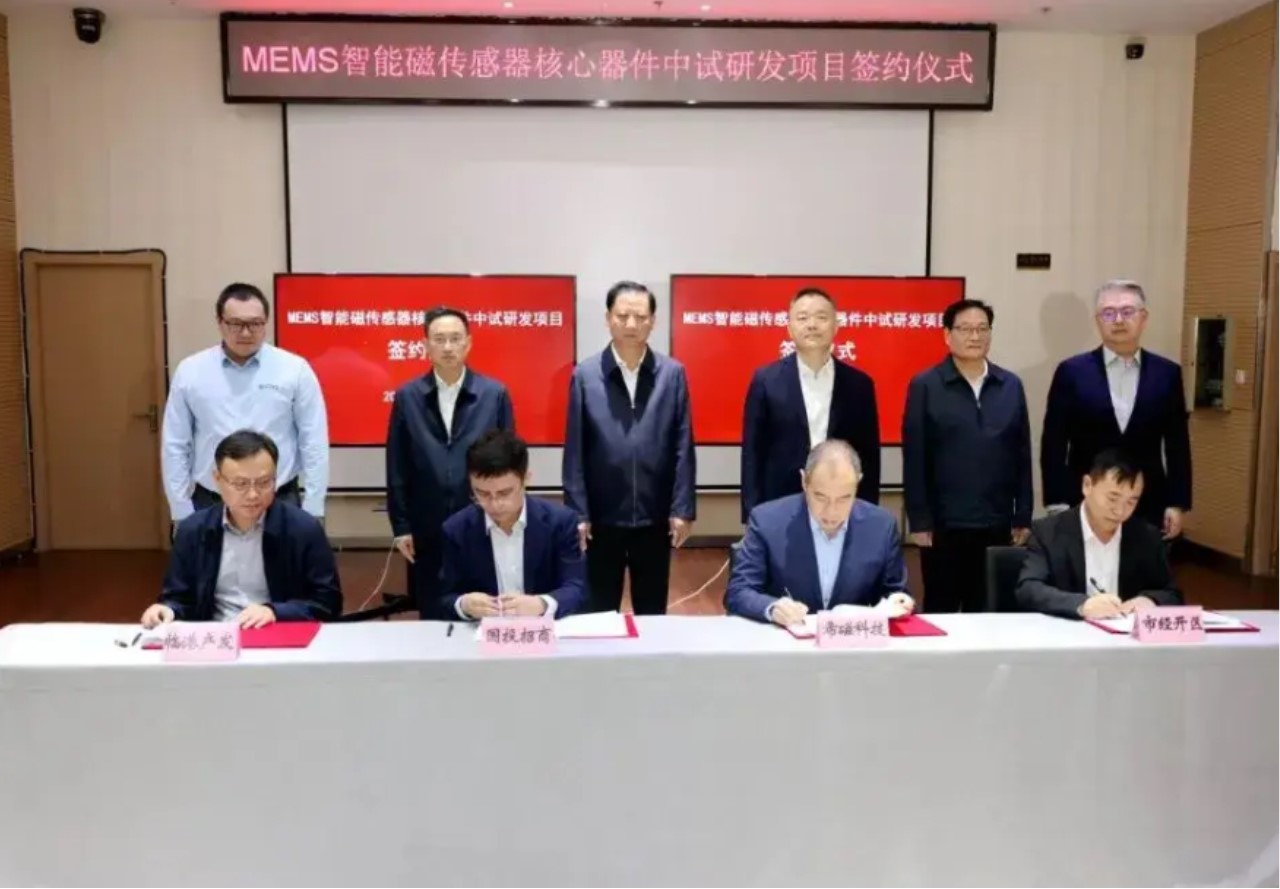 2024年10月7日上午,希磁科技MEMS智能磁傳感器核心器件中試研發(fā)項目在蚌埠市經(jīng)開區(qū)簽約。市委書記黃曉武、市長馬軍出席簽約儀式,并與國投招商投資管理有限公司董事總經(jīng)理陳光、安徽希磁科技股份有限公司董事長王建國等舉行工作座談。