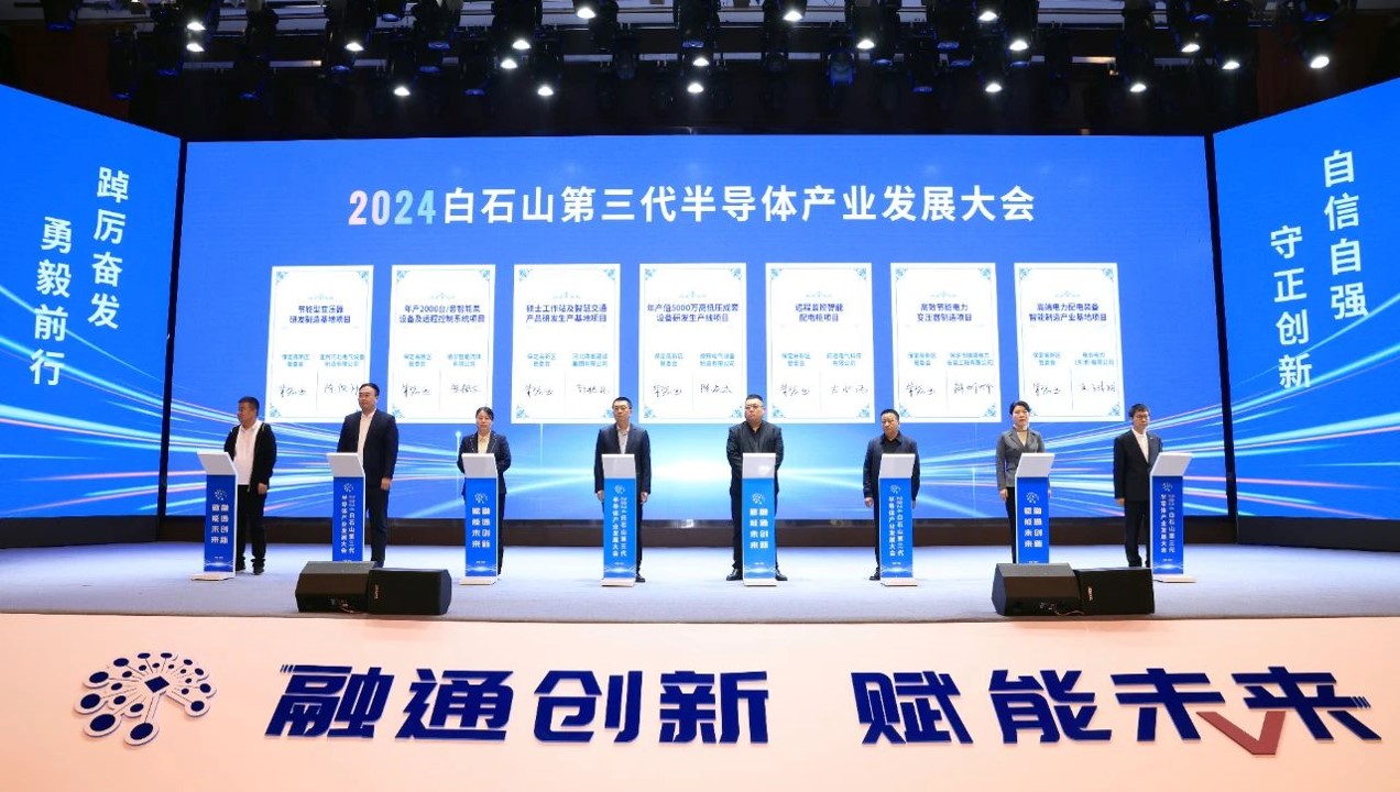 2024年11月9日上午,2024白石山第三代半導(dǎo)體產(chǎn)業(yè)發(fā)展大會(huì)在保定市淶源縣開(kāi)幕。院士專(zhuān)家、政企代表、投融資機(jī)構(gòu)等300余人齊聚淶源縣,共話第三代半導(dǎo)體技術(shù)應(yīng)用、產(chǎn)業(yè)發(fā)展新路徑新模式。開(kāi)幕式上,圍繞第三代半導(dǎo)體、新材料、高端裝備制造等領(lǐng)域,高新區(qū)與14家單位現(xiàn)場(chǎng)簽約,總投資35.8億元。