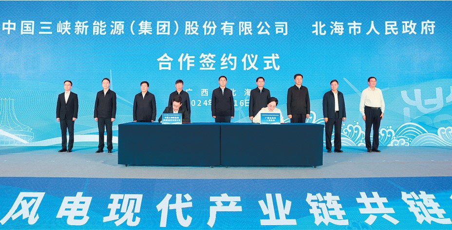 劉偉平表示,廣西區(qū)位優(yōu)勢(shì)明顯,海上風(fēng)電資源稟賦好、開(kāi)發(fā)潛力大,是建設(shè)更具韌性和安全性的海上風(fēng)電產(chǎn)業(yè)鏈供應(yīng)鏈的重要戰(zhàn)略支撐。三峽集團(tuán)作為海上風(fēng)電產(chǎn)業(yè)鏈鏈長(zhǎng)單位,愿協(xié)同產(chǎn)業(yè)鏈相關(guān)各方,投資廣西、深耕廣西,高質(zhì)量開(kāi)發(fā)廣西海上風(fēng)電,努力把資源優(yōu)勢(shì)轉(zhuǎn)化為產(chǎn)業(yè)優(yōu)勢(shì)、發(fā)展優(yōu)勢(shì)和競(jìng)爭(zhēng)優(yōu)勢(shì),為廣西進(jìn)一步激活“藍(lán)色基因”、做強(qiáng)“藍(lán)色產(chǎn)業(yè)”助力賦能,努力把廣西打造成海上風(fēng)電投資熱土、發(fā)展高地,努力把廣西打造成為立足我國(guó)、面向東盟的海上風(fēng)電產(chǎn)業(yè)基地,共同推進(jìn)建設(shè)國(guó)家綜合能源安全保障區(qū),為新時(shí)代壯美廣西建設(shè)貢獻(xiàn)更多力量。