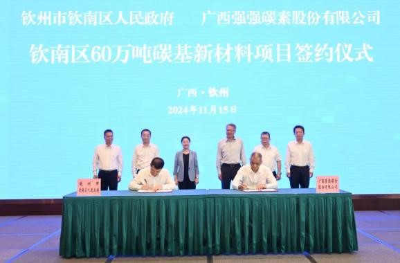2024年11月15日,欽州市欽南區(qū)與廣西強強碳素股份有限公司舉行欽南區(qū)60萬噸碳基新材料項目簽約儀式。