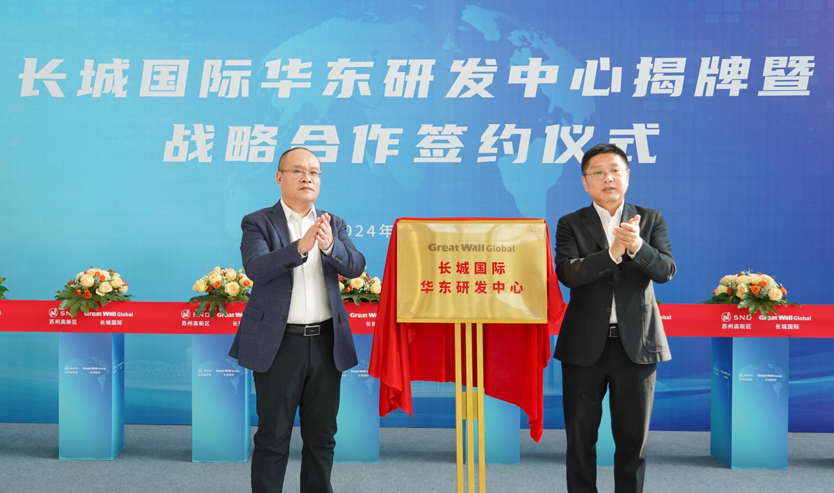 2024年12月30日,長城國際華東研發(fā)中心揭牌暨戰(zhàn)略合作簽約儀式在蘇州高新區(qū)舉行。