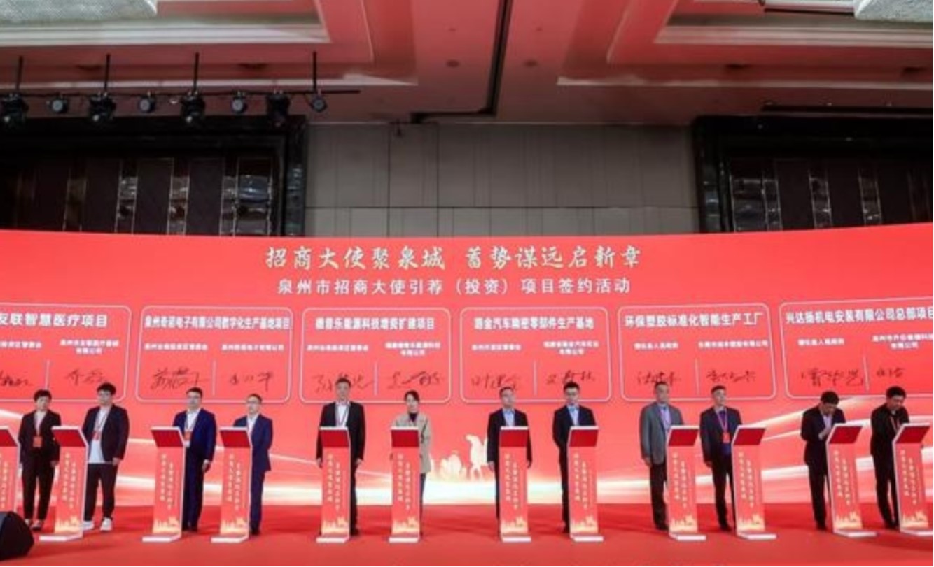 2025年1月5日下午,泉州市招商大使引薦(投資)項目簽約活動成功舉辦?,F場還舉行了第四批14位招商大使聘任儀式以及新設4處招商大使聯絡處揭牌儀式。