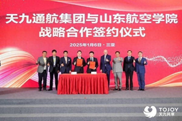 2025 年 1 月 6 日,天九通航集團與山東航空學(xué)院戰(zhàn)略合作簽約儀式在海南三亞舉行。