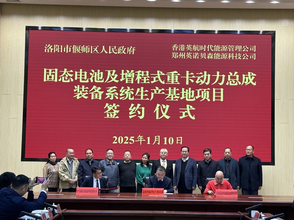 固態(tài)電池及增程式重卡動(dòng)力總成裝備系統(tǒng)生產(chǎn)基地項(xiàng)目,由鄭州英諾貝森能源科技有限公司,以及香港英航時(shí)代能源管理有限公司共同投資建設(shè)。目前,兩家公司在偃師區(qū)已注冊成立洛陽英航千嶼新能源科技有限公司,注冊資本金高達(dá)4000萬美元。