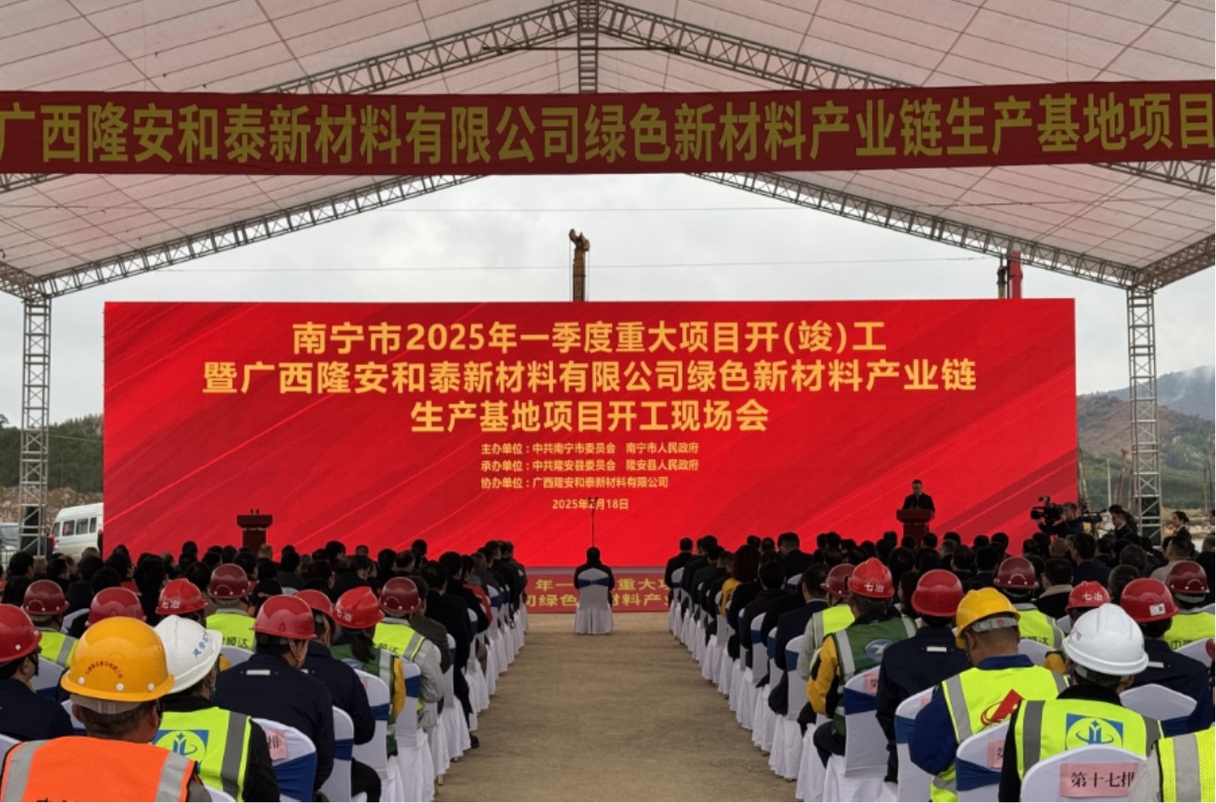 2025年2月18日,南寧市2025年一季度重大項(xiàng)目開(竣)工暨廣西隆安和泰新材料有限公司綠色新材料產(chǎn)業(yè)鏈生產(chǎn)基地項(xiàng)目開工現(xiàn)場(chǎng)會(huì)舉行。