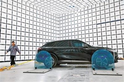 走進(jìn)大興國際氫能示范區(qū)南區(qū)三期的國家氫燃料電池汽車質(zhì)量檢驗(yàn)檢測中心,看到了超級炫酷的“電波暗室”。這間暗室的墻體由數(shù)十萬片鐵氧體材料及吸波材料組建而成,對電磁波有非常強(qiáng)的吸附作用;直徑12米的轉(zhuǎn)臺,可以讓車輛在這里完成360度的“體檢測試”,為氫燃料電池汽車的電磁兼容等性能評估提供了極為精確的實(shí)驗(yàn)條件。