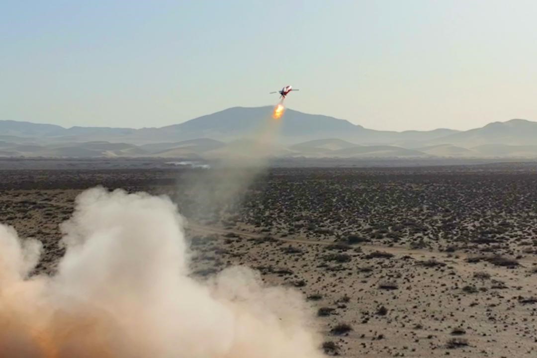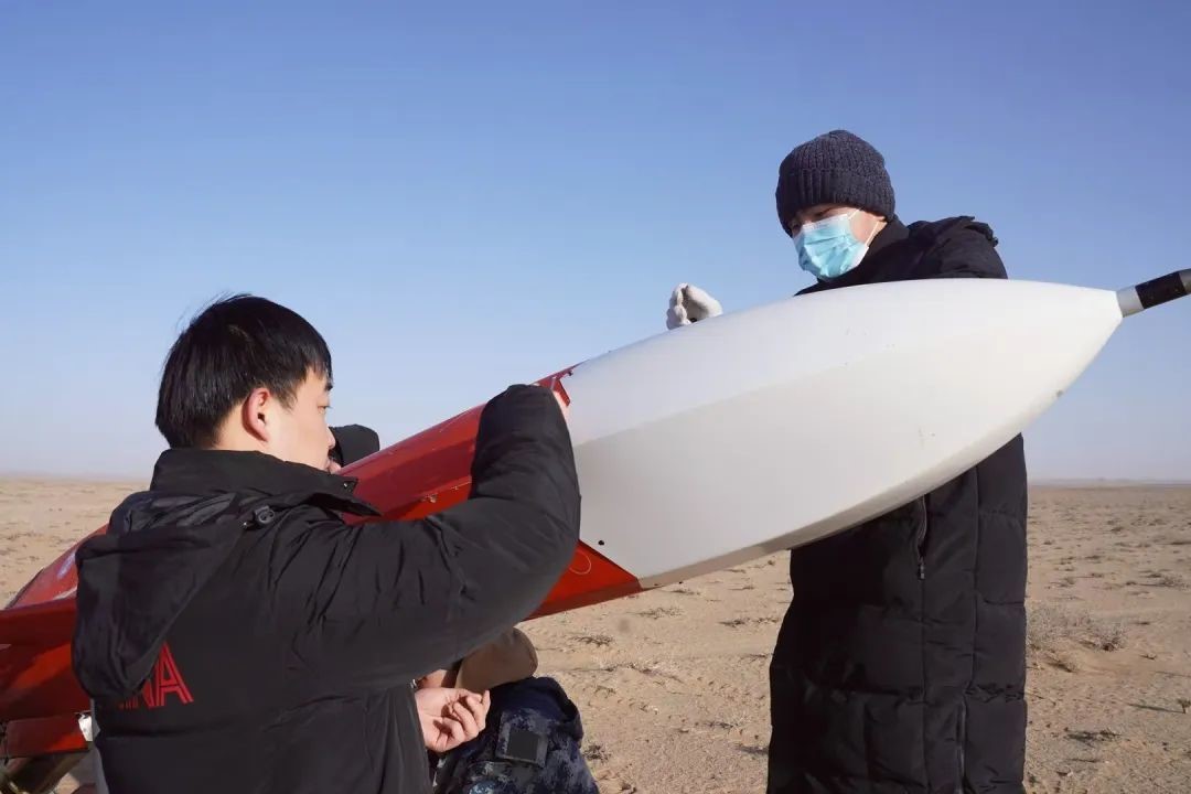 上午9時(shí)30分,在阿拉善綜合試飛試驗(yàn)基地首飛現(xiàn)場(chǎng),某型試驗(yàn)機(jī)在經(jīng)過安裝調(diào)試、風(fēng)速、溫度測(cè)量后,機(jī)尾噴出氣焰,揚(yáng)起滾滾煙塵,隨著“砰”的一聲巨響,飛機(jī)彈射而出,準(zhǔn)時(shí)起飛。