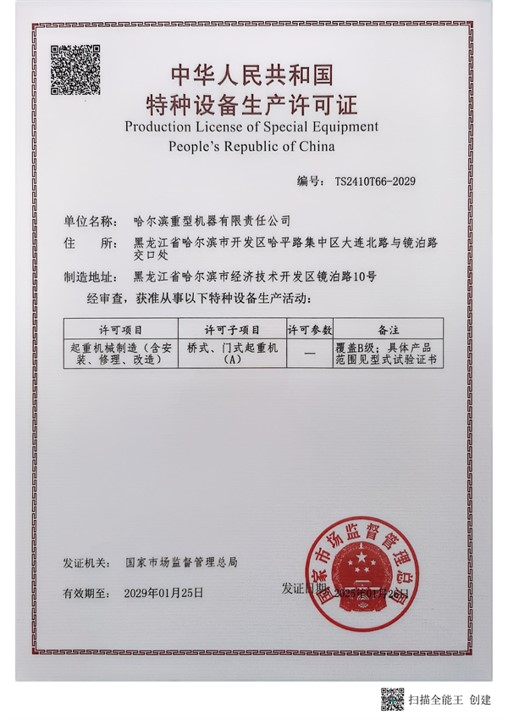 為了進一步拓展業(yè)務(wù)版圖,實現(xiàn)產(chǎn)品多樣化發(fā)展,哈重型決定申辦起重機械設(shè)備生產(chǎn)資質(zhì)。經(jīng)多方努力,今年1月,國家市場監(jiān)督管理總局正式批準(zhǔn)哈重型獲得起重機械設(shè)備生產(chǎn)資質(zhì)。