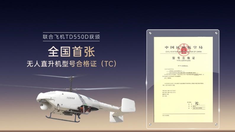 中國(guó)民用航空局日前正式授予聯(lián)合飛機(jī)TD550D無(wú)人直升機(jī)系統(tǒng)型號(hào)合格證,宣告了全國(guó)首款通過(guò)適航審定的無(wú)人直升機(jī)系統(tǒng)誕生。