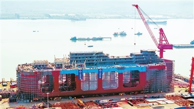 在中交四航局江門(mén)航通船廠養(yǎng)殖工船項(xiàng)目部生產(chǎn)基地見(jiàn)到,十多層樓高的“灣區(qū)伶仃”號(hào)猶如一座巨大的鋼鐵城堡矗立在船臺(tái)上,工人們正緊張地進(jìn)行最后的掛網(wǎng)安裝工作。據(jù)介紹,“灣區(qū)伶仃”號(hào)總投資約2.6億元,養(yǎng)殖水體達(dá)8萬(wàn)立方米,設(shè)計(jì)壽命35年。工船總長(zhǎng)155.8米,型寬44米,型深24.25米,設(shè)計(jì)吃水16米,最大養(yǎng)殖吃水20米,設(shè)有12個(gè)獨(dú)立養(yǎng)殖艙,年產(chǎn)能可達(dá)3000—5000噸,相當(dāng)于陸地5000畝魚(yú)塘的產(chǎn)量,堪稱(chēng)海上巨型“養(yǎng)殖航母”。