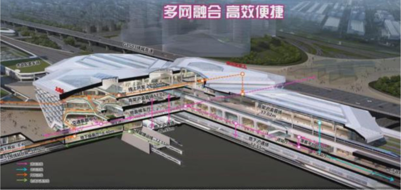 寶山站雙層設計,高架層為滬渝蓉高鐵(4臺8線),地下層為滬通鐵路(4臺10線),實現(xiàn)鐵路與城市空間的高效融合。寶山站將輻射寶山、虹口、楊浦及浦東北部區(qū)域,提升北部市民出行效率,并成為連接長三角、長江經(jīng)濟帶的關鍵節(jié)點。