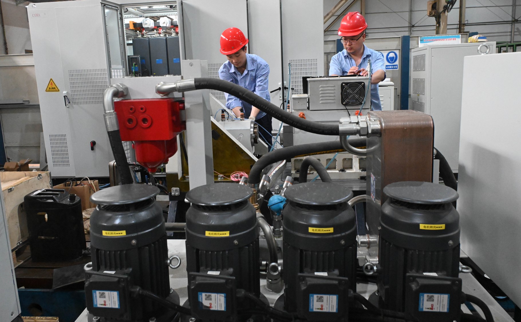 2025年5月8日,在洛陽市凱邁(洛陽)機(jī)電有限公司,企業(yè)自主研制的一批新能源汽車動力智能檢測裝備正在調(diào)試,將交付國內(nèi)頭部新能源車企。