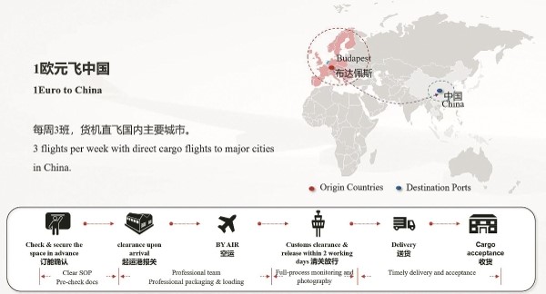 據(jù)了解,該洲際快遞每周三班直航,高附加值的中東歐商品經(jīng)訂艙確認(rèn)、起運(yùn)港報(bào)關(guān)、空運(yùn)入境后,第3天清關(guān)放行、第4天即可送貨上門(mén)?!敖柚鷮幉ù蛟斓倪@一‘黃金通道’,我們要讓紅酒、巧克力等中東歐好物4天內(nèi)進(jìn)入中國(guó)的千家萬(wàn)戶(hù)。”陳威君說(shuō)。
