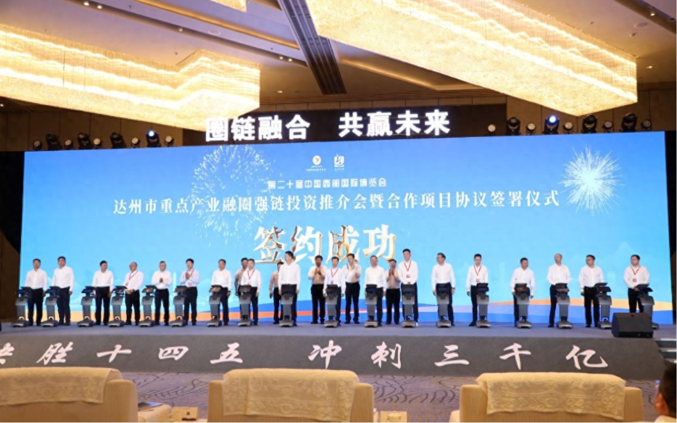 2025年5月25日,在第二十屆西博會(huì)期間,達(dá)州市重點(diǎn)產(chǎn)業(yè)融圈強(qiáng)鏈投資推介會(huì)暨合作項(xiàng)目協(xié)議簽署儀式在成都舉行。儀式上,達(dá)州高新區(qū)與貴州磷化(集團(tuán))有限責(zé)任公司共同簽署了《磷氟新材料循環(huán)經(jīng)濟(jì)產(chǎn)業(yè)園項(xiàng)目合作協(xié)議》,標(biāo)志著總投資40億元的磷氟新材料循環(huán)經(jīng)濟(jì)產(chǎn)業(yè)園項(xiàng)目正式落地達(dá)州高新區(qū)。
