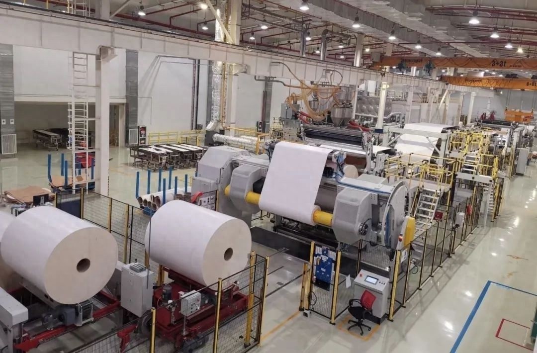 作為包裝紙板行業(yè)的“全能型選手”,位于鐵山港臨海工業(yè)區(qū)的外資企業(yè)斯道拉恩索北海工廠,除了原來(lái)的年產(chǎn)50萬(wàn)噸食品級(jí)包裝紙板生產(chǎn)線、漂白化學(xué)熱磨機(jī)械漿生產(chǎn)線,還增加了一條年產(chǎn)能8萬(wàn)噸的聚乙烯(PE)淋膜生產(chǎn)線,構(gòu)建從林地到成品的全鏈條布局。6月3日,這條新的生產(chǎn)線正式開(kāi)機(jī)。