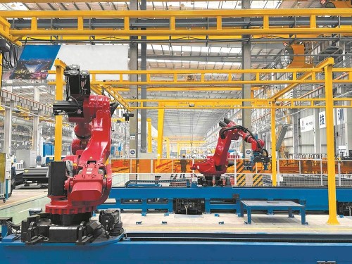 基地建設(shè)項(xiàng)目負(fù)責(zé)人介紹,除了國內(nèi)首條全智能鋼結(jié)構(gòu)部件生產(chǎn)線,基地還配備了行業(yè)領(lǐng)先的全自動無人化鋼結(jié)構(gòu)智能生產(chǎn)線,可實(shí)現(xiàn)從鋼板上線到成品的自動化生產(chǎn),生產(chǎn)效率達(dá)到傳統(tǒng)方式的3倍,達(dá)產(chǎn)后整個(gè)基地年生產(chǎn)能力可達(dá)16萬噸。