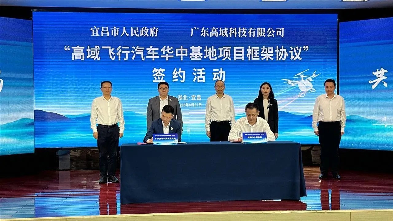 2025年6月27日,宜昌市與廣東高域科技有限公司簽訂框架協(xié)議,高域飛行汽車華中基地項(xiàng)目落戶宜昌猇亭,為宜昌加快建設(shè)中部低空經(jīng)濟(jì)先行示范區(qū)提供支撐。