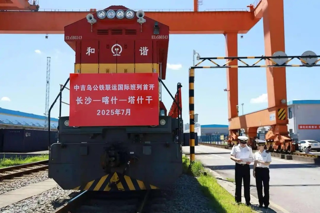2025年7月2日11時05分,經(jīng)星沙海關(guān)監(jiān)管放行,湖南首趟采用出口貨物鐵公多式聯(lián)運(yùn)業(yè)務(wù)模式的整列國際班列——“中吉烏”鐵公多式聯(lián)運(yùn)班列從長沙國際鐵路港鳴笛發(fā)車。班列裝載19.28噸茶葉,抵達(dá)新疆喀什后,將換裝公路運(yùn)輸,從伊爾克什坦口岸出境,途經(jīng)吉爾吉斯斯坦,最終抵達(dá)烏茲別克斯坦。