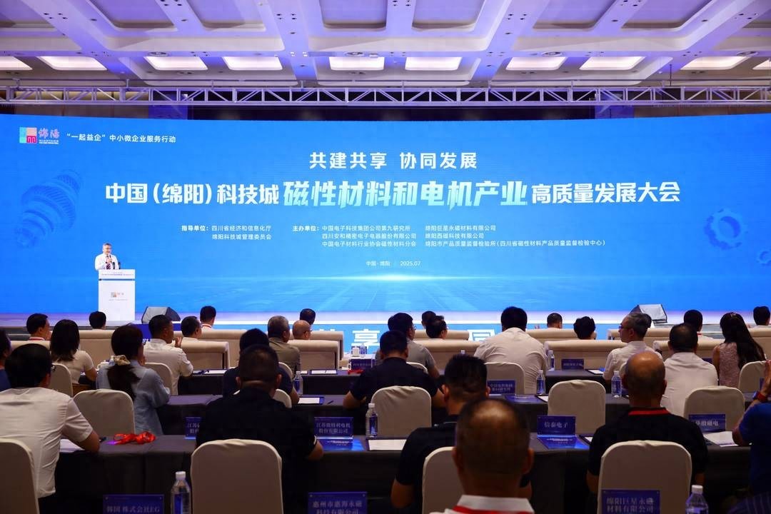 2025年7月11日,中國(綿陽)科技城磁性材料和電機(jī)產(chǎn)業(yè)高質(zhì)量發(fā)展大會在綿陽成功舉行。以“共建共享·協(xié)同發(fā)展”為主題,此次大會匯聚了來自全國磁性材料和電機(jī)產(chǎn)業(yè)鏈上下游企業(yè)、科研院所、高校等200余名院士、專家、企業(yè)代表,共謀綿陽科技城磁性材料和電機(jī)產(chǎn)業(yè)創(chuàng)新發(fā)展。