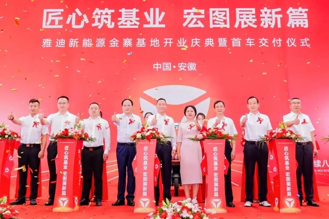 2025年8月15日,雅迪金寨基地二期——新能源基地正式投產(chǎn)并完成首車交付。