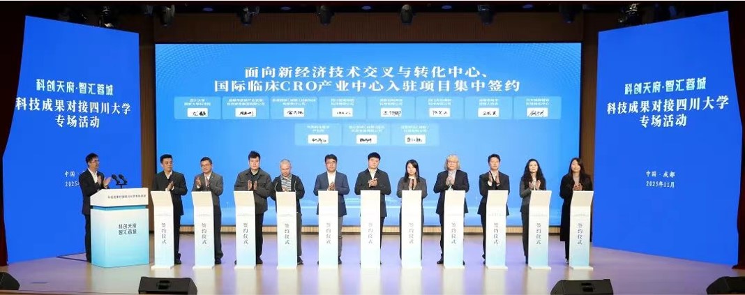 2025年11月12日,“科創(chuàng)天府·智匯蓉城”科技成果對接四川大學專場活動舉行?;顒蝇F(xiàn)場,成都市人才科技創(chuàng)新服務中心正式揭牌,面向新經(jīng)濟技術交叉與轉化中心正式啟用;發(fā)布四川大學科技成果470余項,集中簽約了一批重點項目,3位企業(yè)家圍繞技術產(chǎn)業(yè)化作主題分享。