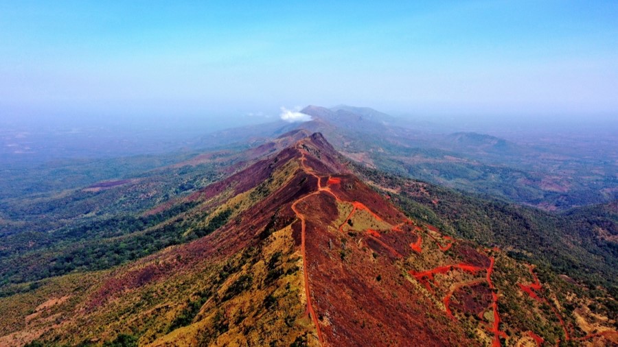 西芒杜鐵礦位于幾內(nèi)亞東南部凱魯阿內(nèi)省,儲量至少30億噸,已探明儲量44億噸,屬于世界級的大型優(yōu)質(zhì)露天赤鐵礦。該礦最顯著的特點是礦石平均全鐵品位超過65%,屬于全球最高和最珍貴的等級,礦體集中、埋藏淺、易開采。該礦床最早在20世紀50年代幾內(nèi)亞仍為法國殖民地時就已勘探出。1998年,地質(zhì)學家西迪基·科內(nèi)帶領(lǐng)團隊為力拓集團進行測繪與鉆探,當時他穿越密林高原連續(xù)跋涉6個小時,幾乎難以想象這項工作能夠完成。