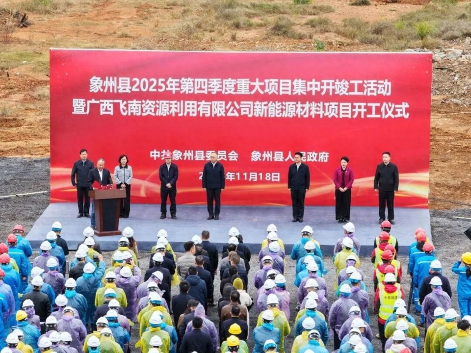 2025年11月18日,公司旗下全資子公司——廣西飛南資源利用有限公司新能源材料項(xiàng)目在廣西來賓市象州縣奠基。