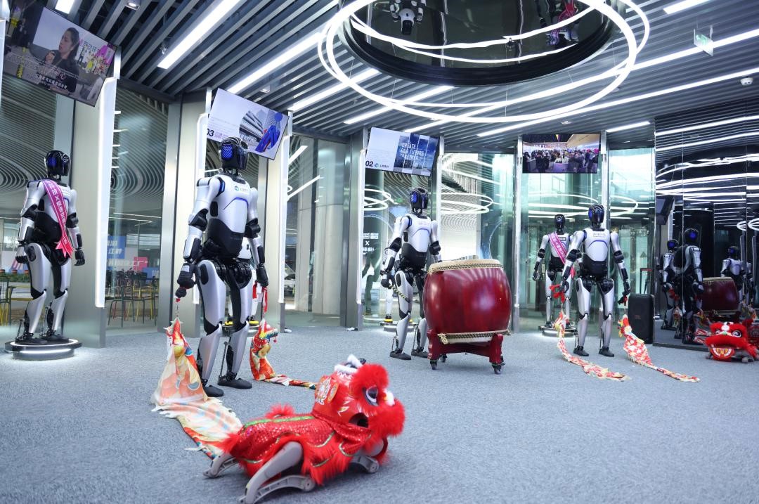 開業(yè)現(xiàn)場(chǎng),科技與趣味交融的表演掀起陣陣熱潮。機(jī)器人與機(jī)器狗聯(lián)袂呈現(xiàn)“鼓樂齊鳴,彩獅翻騰”的精彩演出,靈活的動(dòng)作與默契的配合展現(xiàn)了具身智能的前沿水平;模速空間001號(hào)具身智能員工“模小速”更是實(shí)力圈粉,作為工坊首個(gè)具象化成果,它不僅承擔(dān)迎賓、串場(chǎng)工作,更現(xiàn)場(chǎng)展示了唱歌、跳舞、講故事、比愛心等多元技能,實(shí)時(shí)互動(dòng)溝通的表現(xiàn)將現(xiàn)場(chǎng)氣氛推向高潮,成為人機(jī)共情共創(chuàng)的生動(dòng)詮釋。