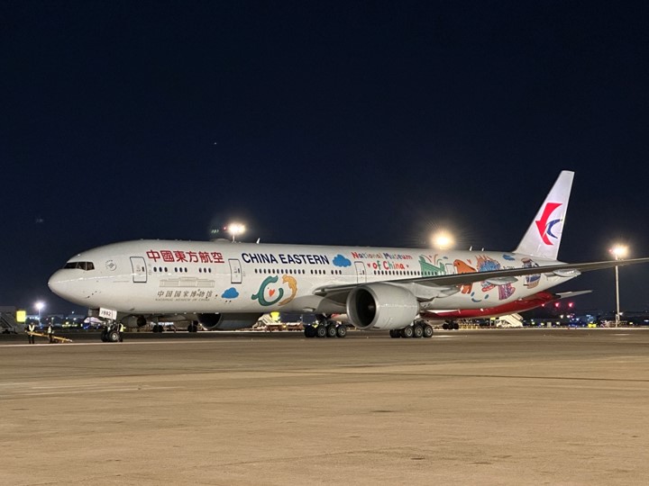 此次首航航班,東航選用“國(guó)博號(hào)”主題彩繪機(jī)執(zhí)飛。這架彩繪機(jī)基于波音777-300ER大型寬體客機(jī)打造,由中國(guó)東航與中國(guó)國(guó)家博物館聯(lián)袂設(shè)計(jì),于今年9月亮相,被譽(yù)為國(guó)博48個(gè)標(biāo)準(zhǔn)展廳之外的“第49個(gè)展廳”,承載著滿(mǎn)滿(mǎn)的中華文化元素。機(jī)身采用“雙面全機(jī)身彩繪”方案,從143萬(wàn)余件國(guó)博館藏珍品中遴選出玉龍、玉鳳、鷹形陶鼎、“后母戊”青銅方鼎、孝端皇后鳳冠和霽青釉金彩海晏河清尊等6件橫跨五千多年歷史的瑰寶文物作為主視覺(jué)元素進(jìn)行噴涂。海晏河清尊象征著“海晏河清、四海承平”,其仿制品將隨此次航班一同飛赴南美,向世界傳遞中國(guó)開(kāi)放、和平、繁榮的形象。