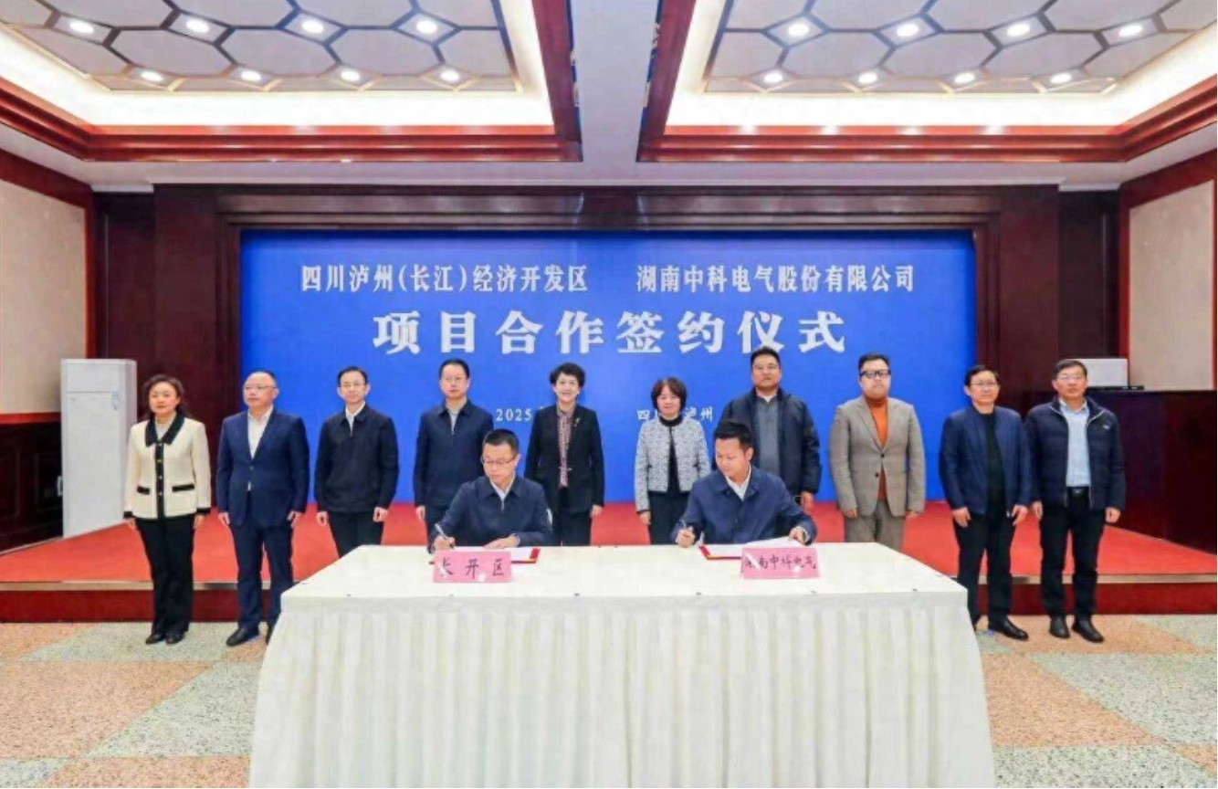 2025年12月15日,四川瀘州(長江)經(jīng)濟開發(fā)區(qū)與湖南中科電氣股份有限公司項目合作簽約儀式在南苑會議中心舉行。