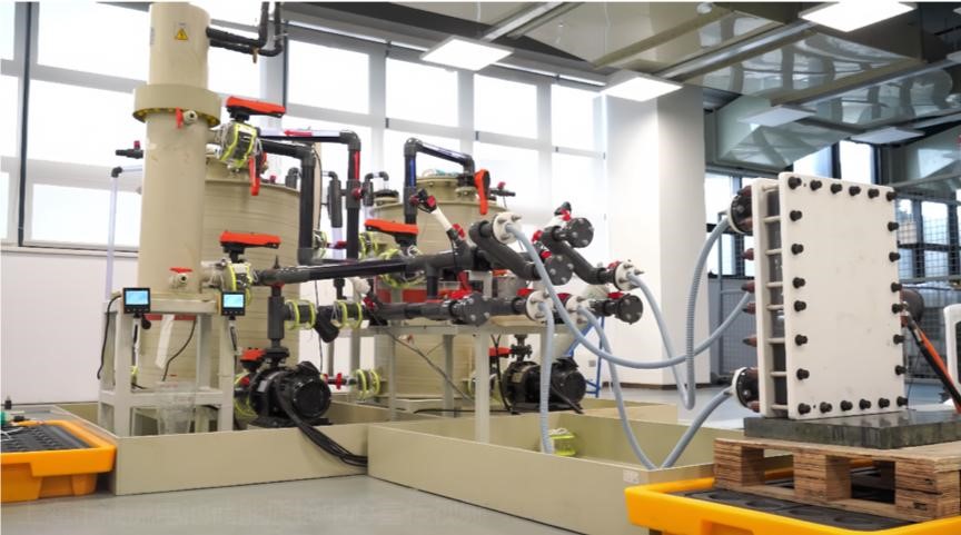 上海市液流電池儲能質(zhì)量檢驗檢測中心由上海國纜檢測股份有限公司承建。該中心自主研發(fā)大功率液流電池電堆短路測試系統(tǒng)、液流電池系統(tǒng)交直流一體化檢測裝置,定制開發(fā)百千瓦級全釩液流電池電堆檢測系統(tǒng),500kW以下全釩液流電池系統(tǒng)單元的電性能測試平臺;解決了液流電池在大電流、長時放電等特殊工況下的檢測難題,在國內(nèi)首次實現(xiàn)了針對百千瓦級以上全釩液流電池電堆的高低溫存儲與溫度沖擊等重要檢測項目的試驗能力。