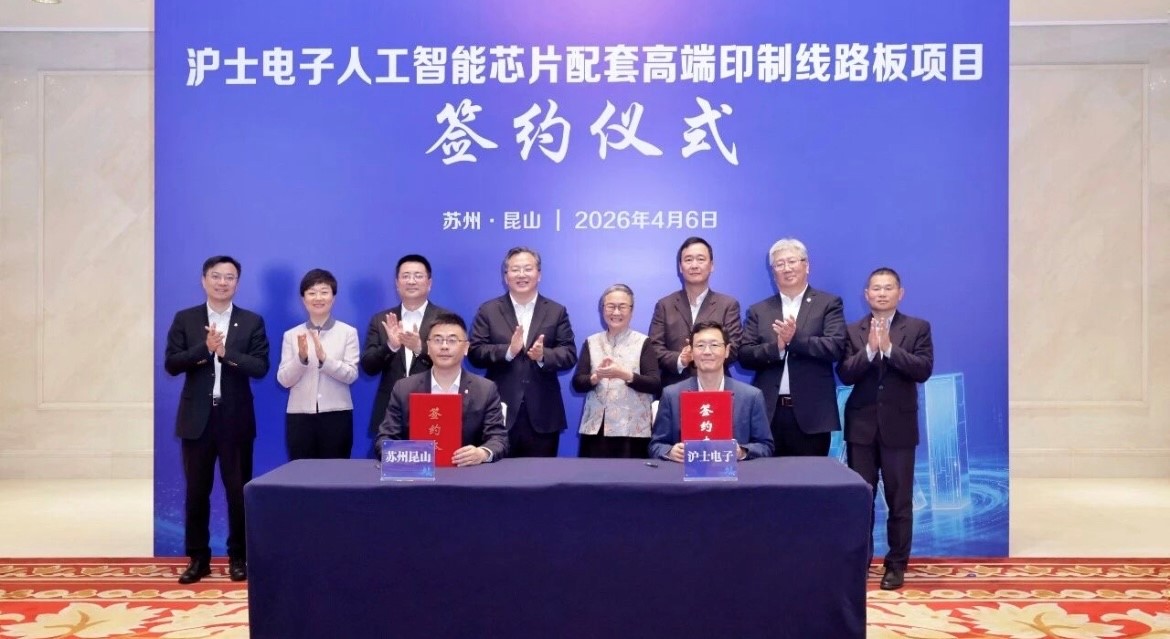 2026年4月6日,滬士電子人工智能芯片配套高端印制線路板項目簽約儀式在昆山舉行。